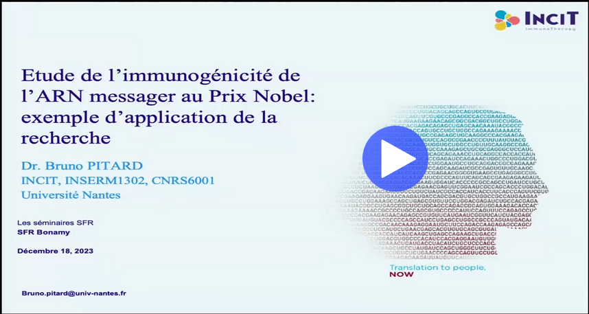 Bruno Pitard (INCIT) _ De l'étude de l’immunogénicité de l'ARN messager au prix Nobel, exemple d'application de la recherche _ Déc23