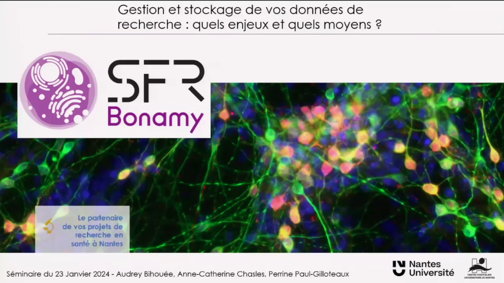 Partie 3 : Replay Collecte et conservation patrimoniale des données_Sébastien Chetanneau (pdf_4Mo)_23'20'' La gestion des données nécessitant du calcul intensif_Audrey Bihouée (pdf_5,2Mo)_34'55'' Actions en cours avec les infrastructures nationales sur la gestion des données de plateformes en biologie santé_Perrine Paul-Gilloteaux & Raluca Teusan (pdf_5Mo)_51' échanges